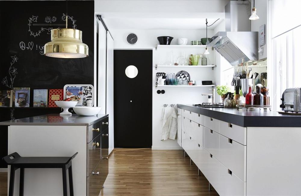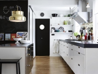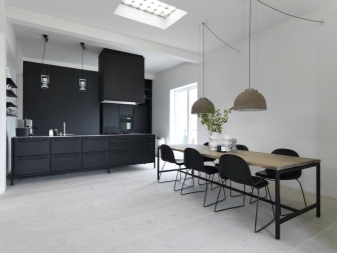 Éternelle classique - une combinaison de blanc et de noir. La couleur noire peut être utilisée à la fois dans la cuisine et dans le salon. L’essentiel est de choisir des proportions pour différentes pièces et de ne pas oublier que L’utilisation du noir dans les pièces peu ensoleillées rend la pièce sombre.