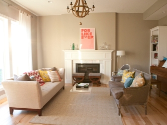 Si vous voulez éviter la blancheur de l’hôpital, vous pouvez prendre du plâtre beige sur les murs jusqu’au plafond blanc. Souvent, l’un des murs est peint dans une couleur différente, associée à des meubles ou des textiles.