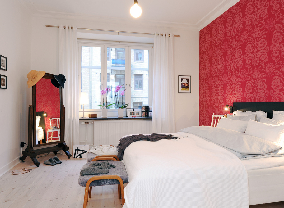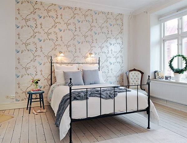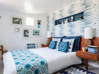 Les papiers peints ne sont pas l'élément principal des murs. Le plus souvent, il s’agit d’un décor fragmentaire, vous permettant de vous concentrer sur le lit ou le lieu de travail.Fond d'écran très populaire, créé dans les pays scandinaves, depuis qu'ils ont un motif typiquement scandinave