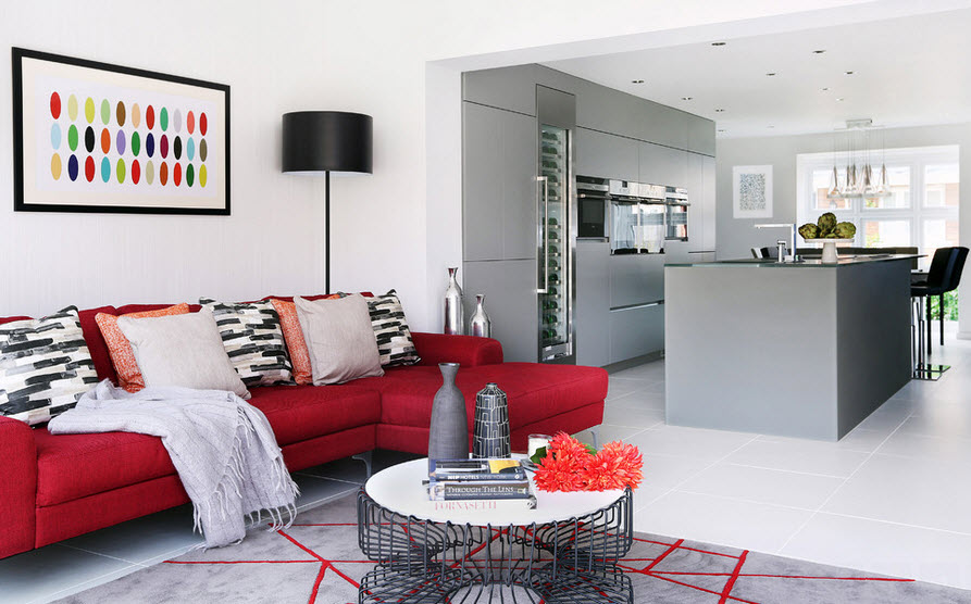 Récemment, le Falun rouge est redevenu populaire. Cette couleur est largement utilisée par les constructeurs modernes, les concepteurs. Pour les Scandinaves, la maison rouge est le symbole d'une vie de famille sûre.L'utilisation de capes, de carpettes et de houppes de cette couleur profonde confère à la maison un sentiment de stabilité et de fiabilité. Si vous souhaitez rendre la pièce encore plus chaleureuse et conviviale, utilisez des nuances de jaune et d'orange.