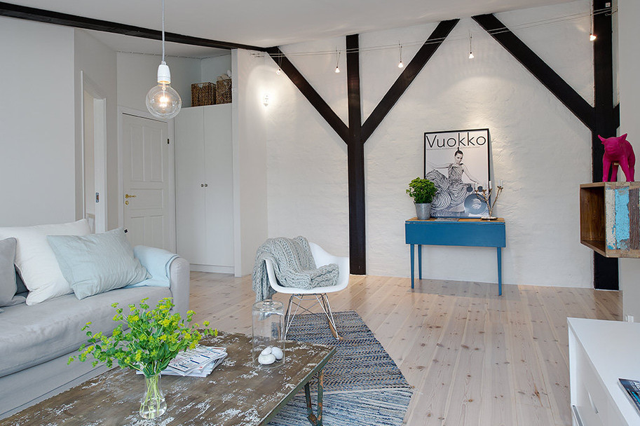 - Le style scandinave est un mélange de minimalisme et de loft, de Provence et d’ethno; l'essentiel est d'avoir beaucoup de nuances claires;