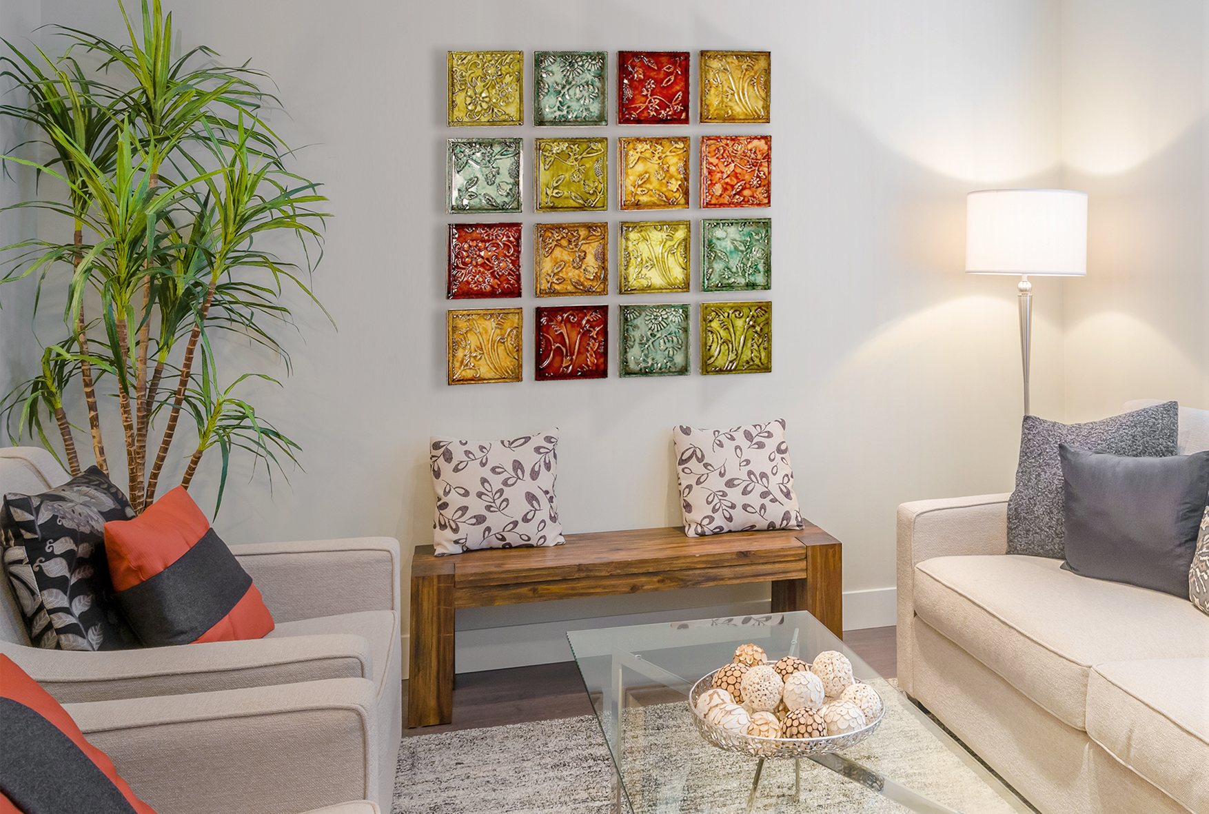 Les vases en verre transparent vous permettront de voir un rayon de lumière à travers le verre et de jouer avec le lièvre solaire. Et si le vase est rempli de petites pierres colorées, de perles, de sciure de bois, il attirera l’attention par son caractère unique. Général Les choses faites à la main sont les bienvenues dans ce style.. Il peut s'agir d'un panneau mural ou d'un tapis tissé à la main.