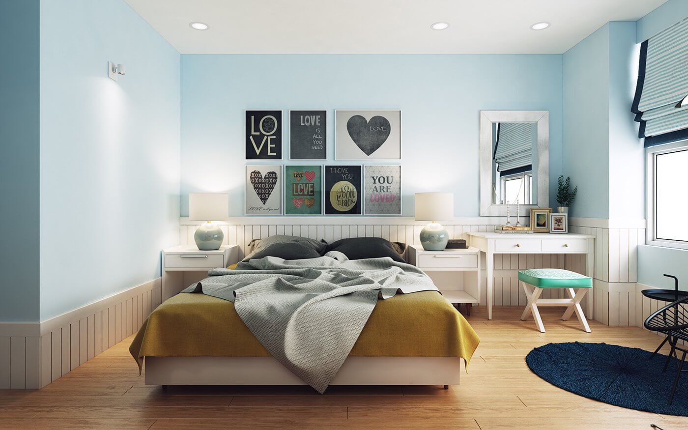 Le plafond scandinave moderne est composé de plâtre et de chaux. Et n’ajoutez pas de couleur rose ou beige au badigeon. Pour donner de la légèreté et du naturel, ajoutez parfois un peu de teinte bleue ou verte. Et aucune bordure contrastante utilisant des couleurs vives.