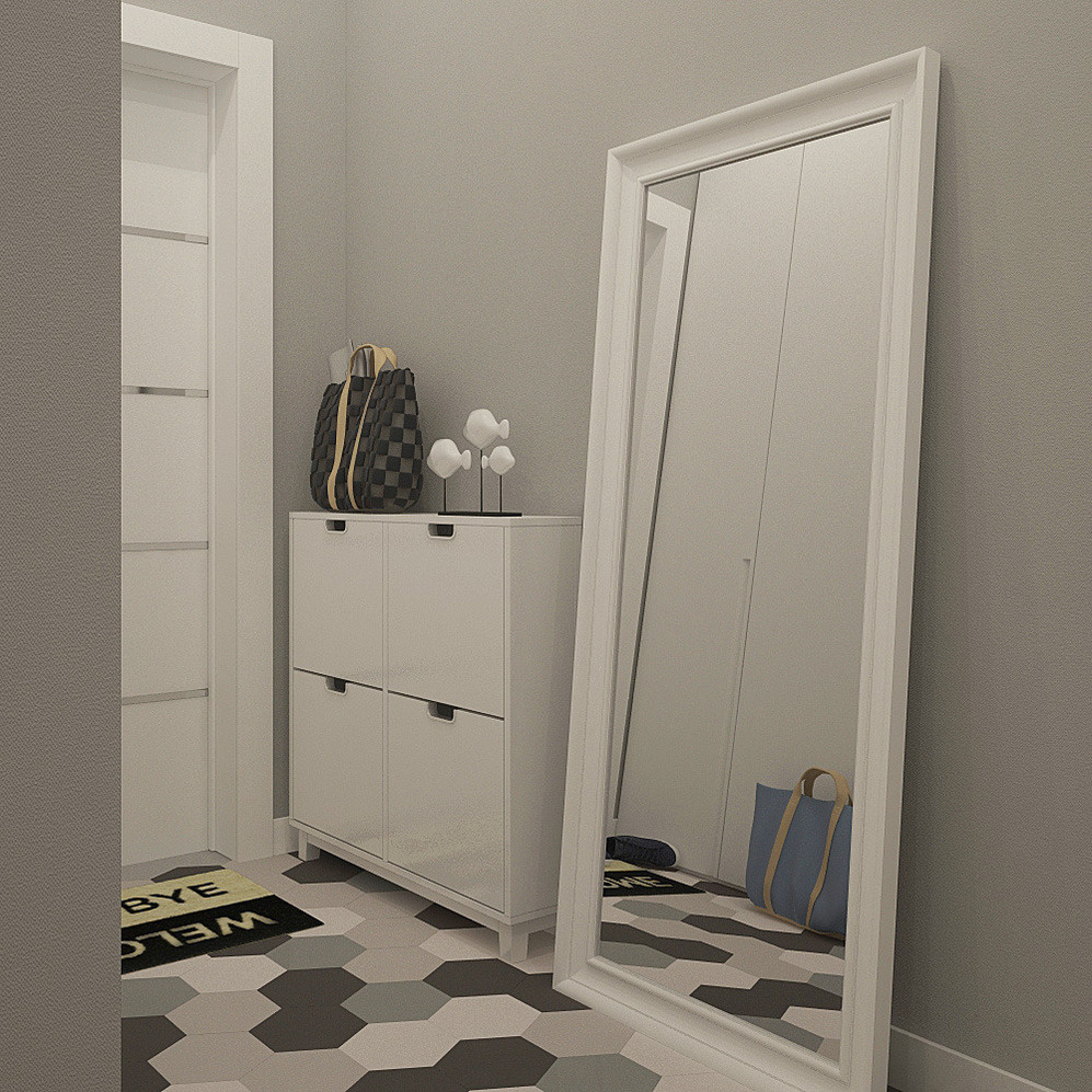 Pour l’agrandissement visuel de l’espace, utilisez souvent non seulement des couleurs, mais également des miroirs. Cela peut être un miroir de sol dans la salle de bain, un miroir sur la façade de la garde-robe, de petits miroirs collés au mur.