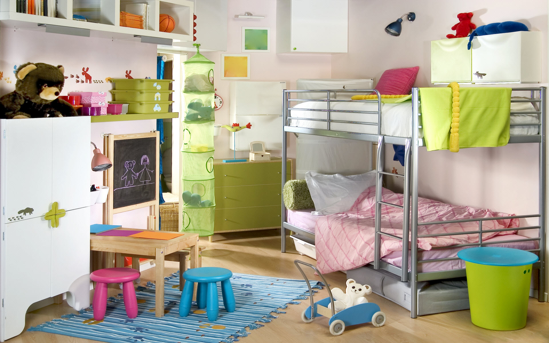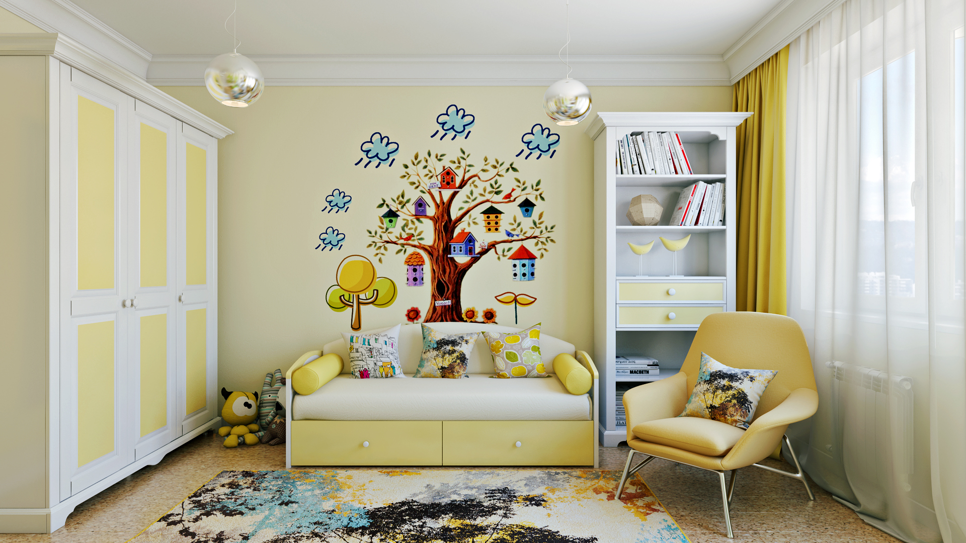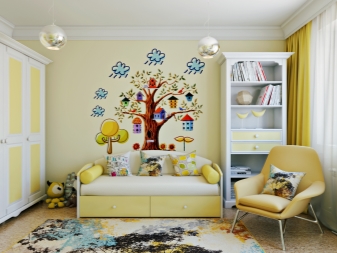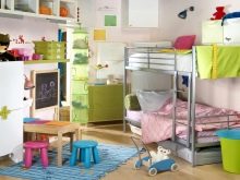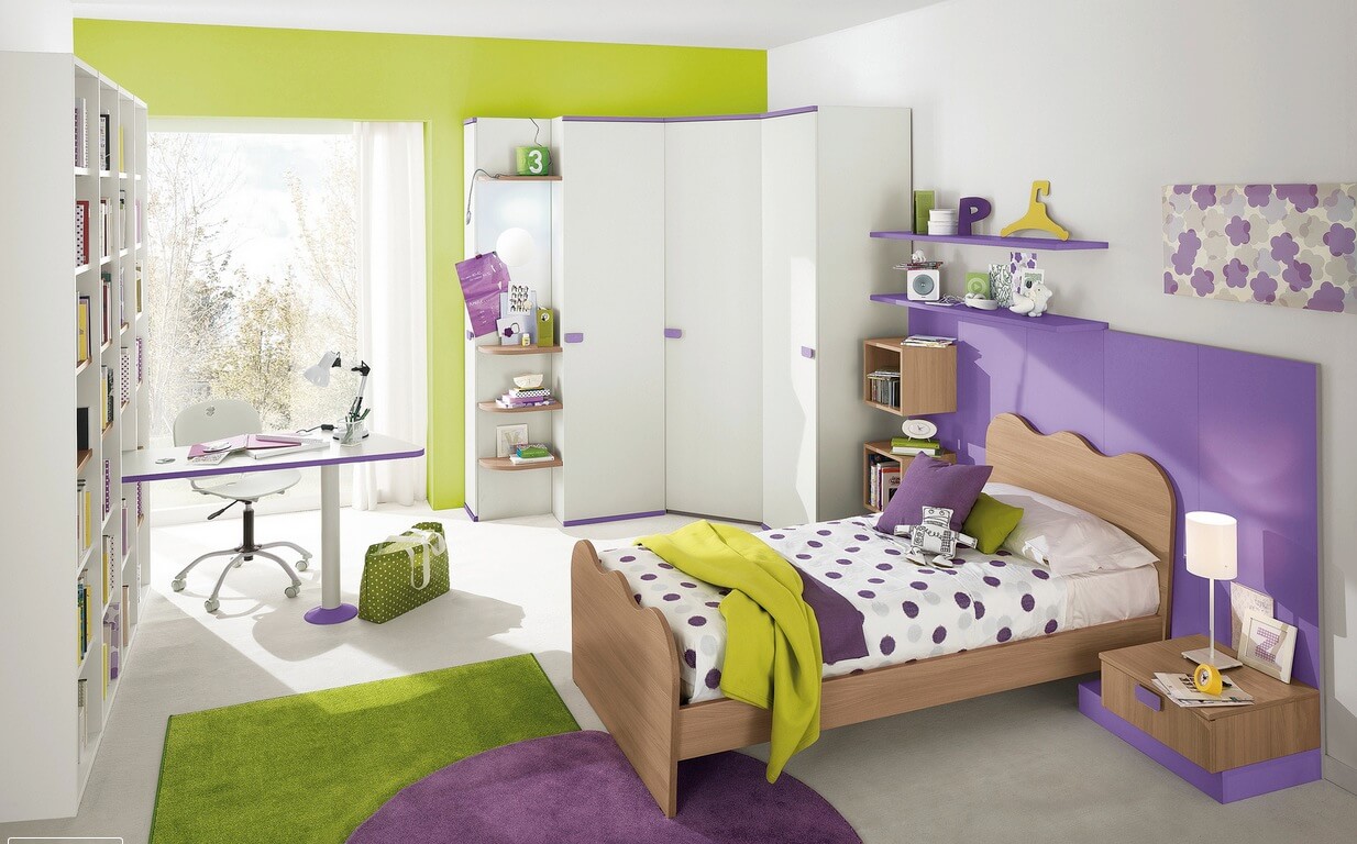 Dans la chambre d'enfant moderne, il devrait y avoir beaucoup d'armoires et de tiroirs. Vous devriez acheter un lit confortable séparé, le placer dans un coin et acheter un petit mur fonctionnel avec le lieu de travail de votre enfant.