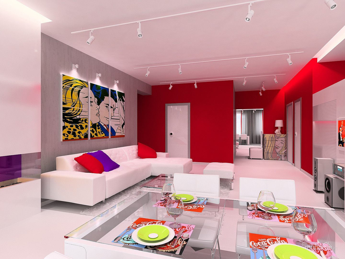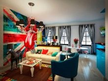 Le style moderne peut combiner les caractéristiques du minimalisme, du pays et même de certains éléments des classiques. Non moins populaire est la conception d'un appartement dans le style pop art, qui offre des combinaisons colorées, des mélanges inhabituels et juteux.