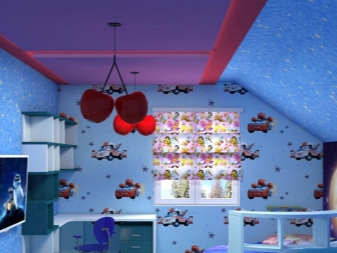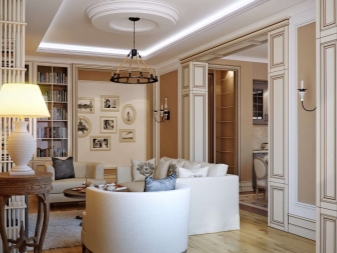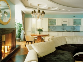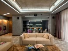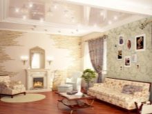Avec la conception des plafonds doivent être prudents. Des expériences inhabituelles ne peuvent être appliquées que si l'appartement a de hauts plafonds et que la pièce elle-même est spacieuse. Si votre maison a un plafond supérieur à 3 m, elle peut être décorée avec des éléments texturés intéressants ou des façades à plusieurs niveaux.