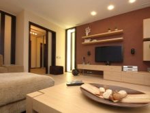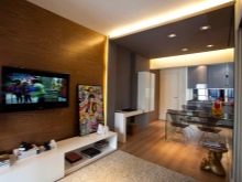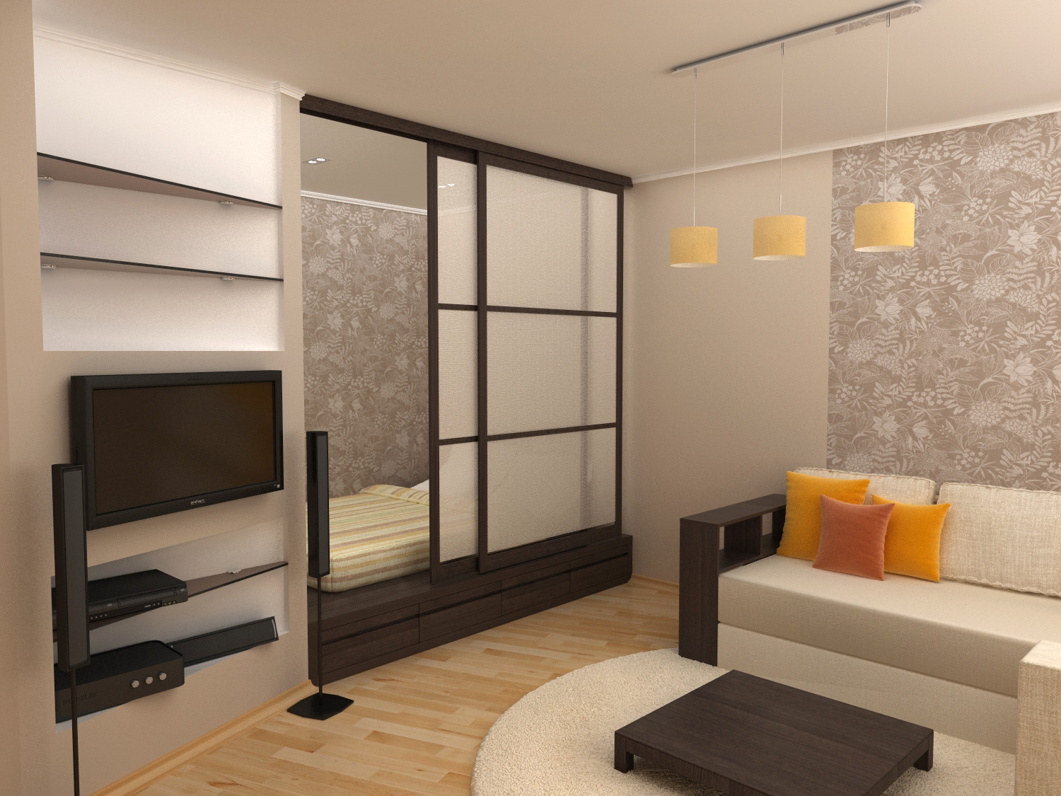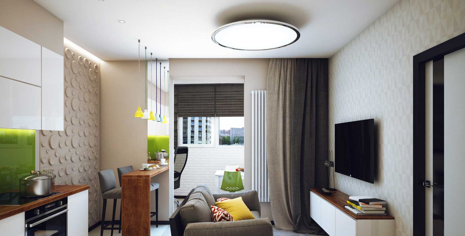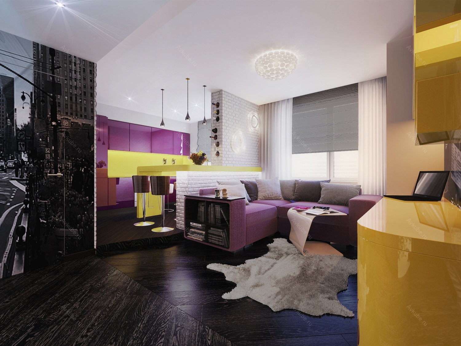 Une telle panification d'un appartement d'une pièce permettra d'organiser un studio et de rendre la pièce plus moderne et fonctionnelle.