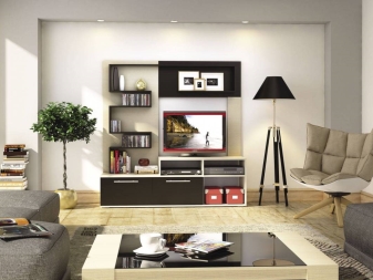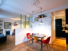 Pour la cuisine, faites attention aux mini-modèles. Ils assument de petits casiers et le stockage le plus ouvert. Les kitchenettes ont l'air très mignon et moderne. Les murs du salon ne sont plus aussi populaires aujourd'hui, mais de nombreux modèles en verre sont toujours recherchés.Le verre doit être dépoli afin de cacher le contenu des armoires.