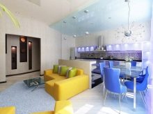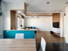 Un autre exemple intéressant est la conception d'un appartement dans le style de fantasy electrics, qui vous permet de combiner ce qui, au premier abord, est incompatible, et suggère des symétries intéressantes. Les murs monochromes peuvent être décorés avec des panneaux lumineux et des éléments de la couleur de l'aqua.