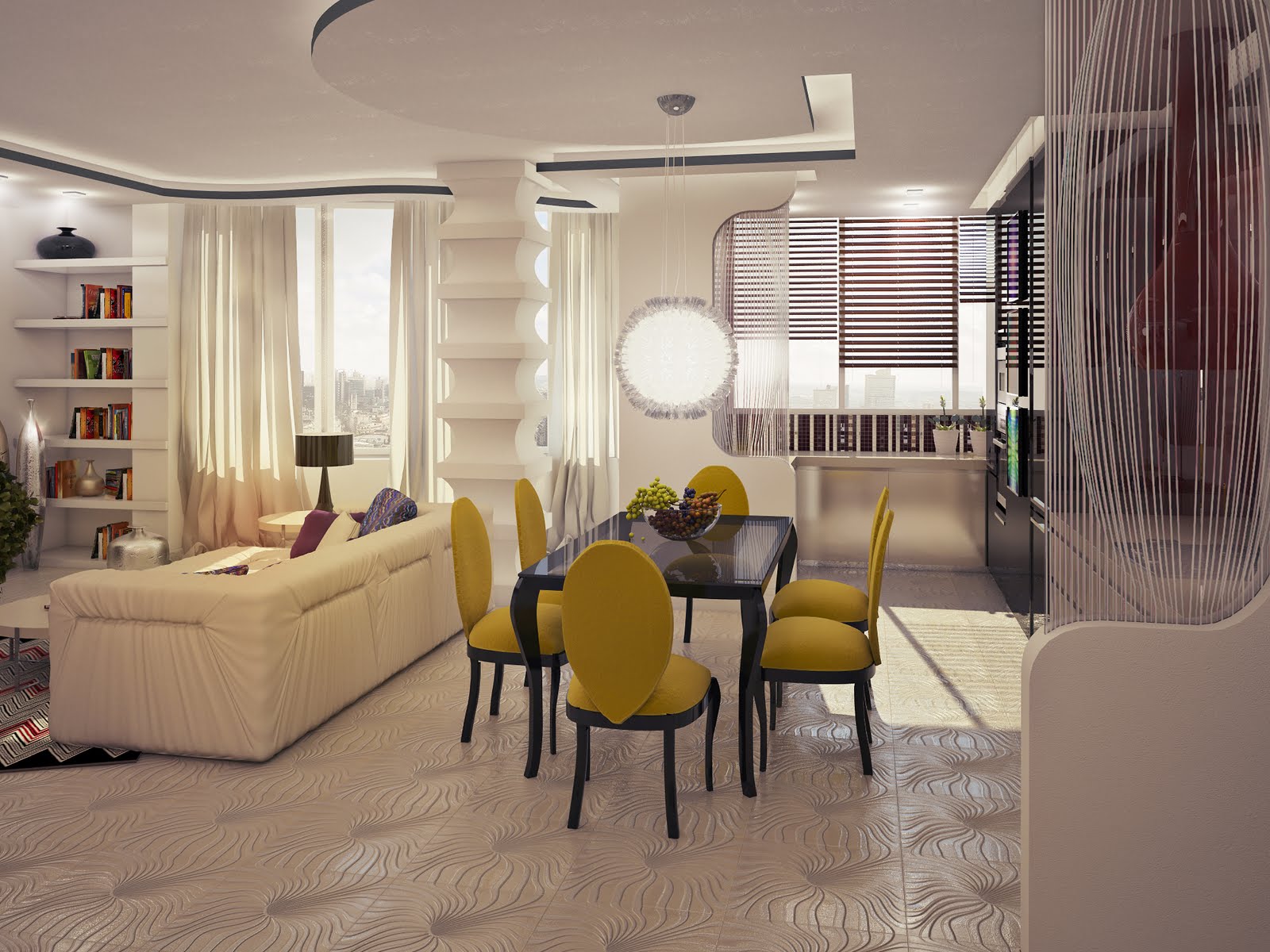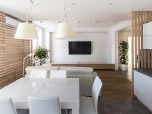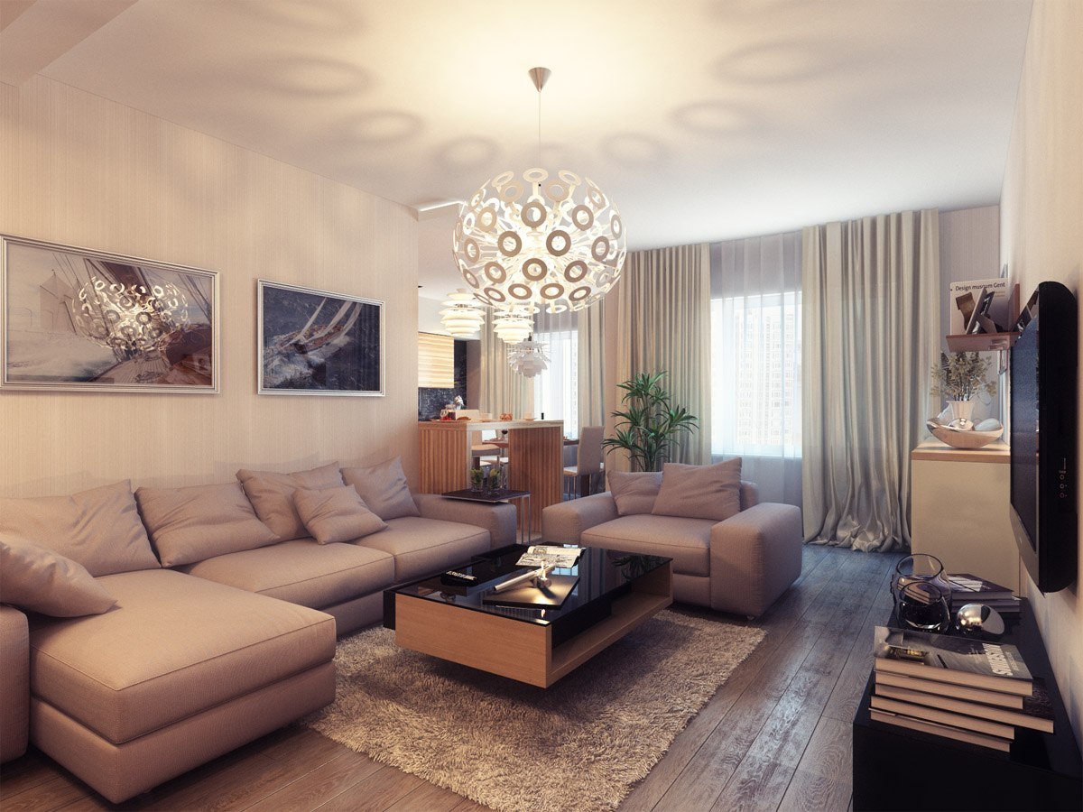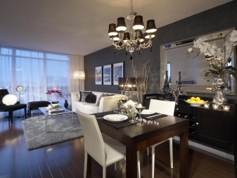 Si votre appartement dispose de plusieurs pièces, la planification doit être abordée de manière plus responsable. Le salon traditionnel peut être une pièce standard où tous les invités et les ménages se réuniront lors de agréables soirées familiales. Mais les aménagements modernes suggèrent la combinaison d'un salon et d'un coin repas.Dans les appartements modernes, la cuisine ne prend pas beaucoup de place, il est donc difficile d'y placer une salle à manger.