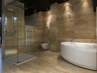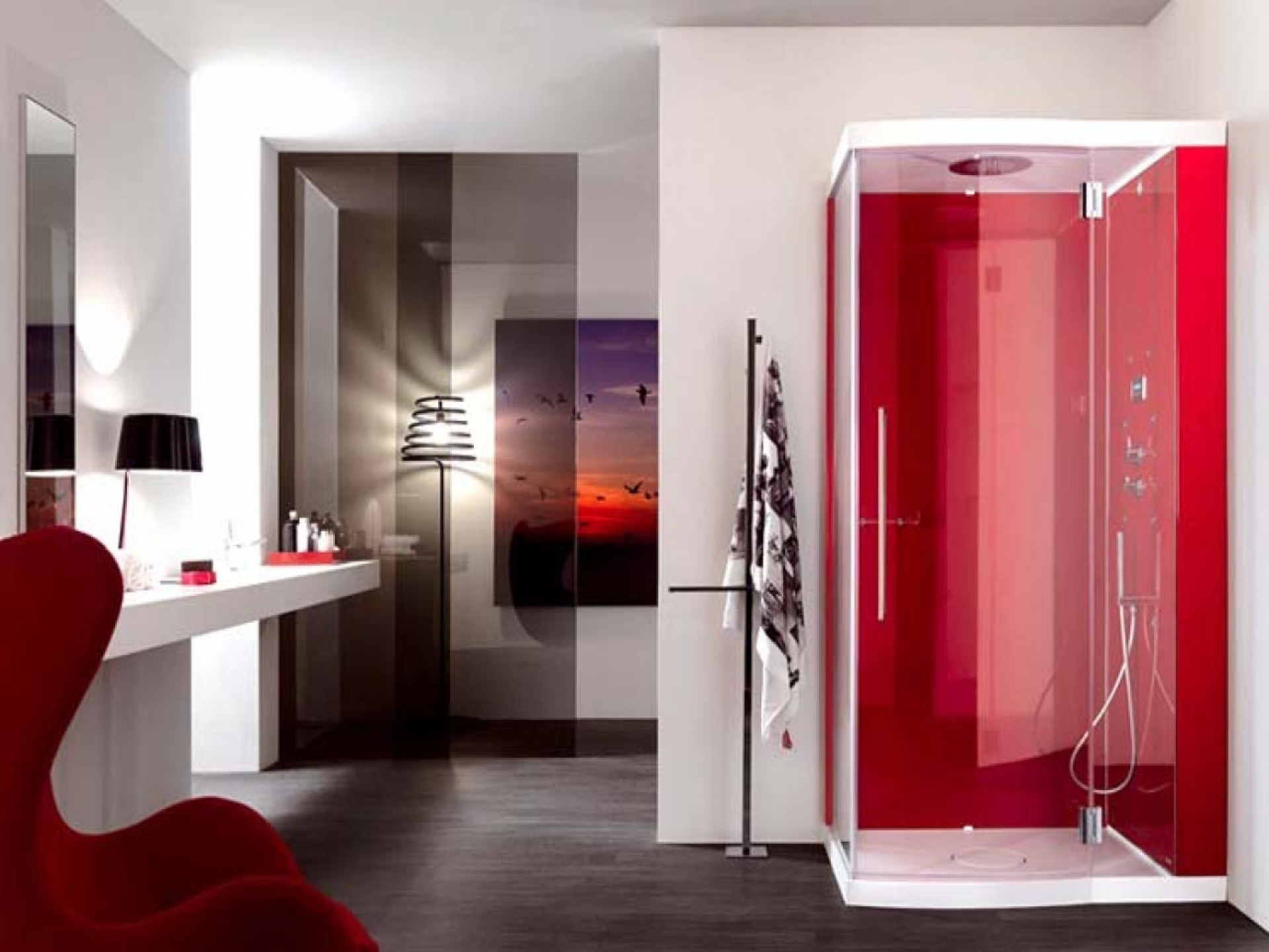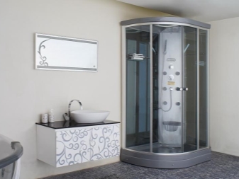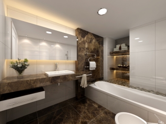 En règle générale, la planification de la salle de bain est plus difficile car elle est très petite dans les appartements modernes. Par conséquent, il est préférable d’installer une cabine de douche plus moderne, de forme standard, avec des surfaces en verre translucide. Vous pouvez accrocher autant de miroirs que possible pour agrandir visuellement l'espace. La salle devrait comporter de nombreuses étagères fonctionnelles pratiques où vous pourrez disposer tous les accessoires nécessaires.