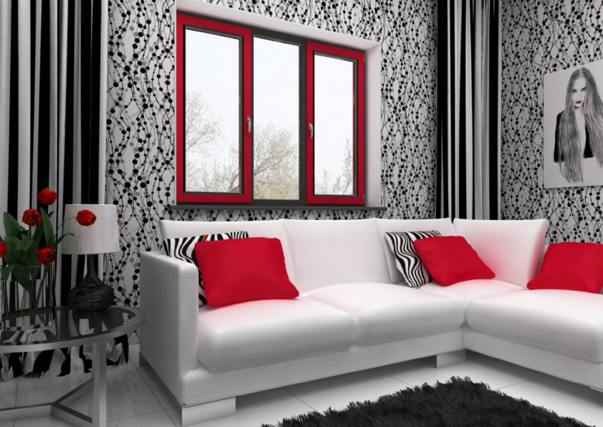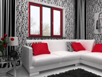 Les lambrequins ne sont pas valables. Le refus d'une telle décoration de fenêtre vous permet de rendre la pièce plus libre. Les fenêtres semblent nues sans elle, mais la lumière du jour et les paysages s’ouvrant de la fenêtre remplissent au premier regard la pièce vide de la vie. Les cadres de fenêtre sont souvent mis en évidence dans une couleur contrastante. C'est une autre caractéristique importante liée aux tendances du style moderne.