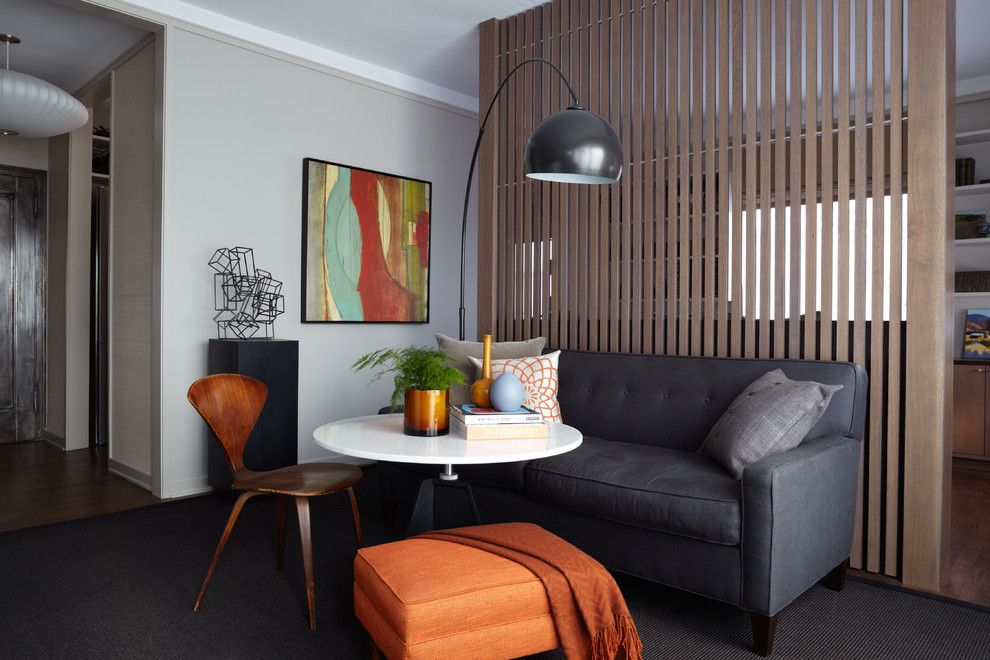 La forme des meubles devrait être plus douce et plus simple. Et il est préférable d'utiliser des meubles modulaires, avec lesquels vous pouvez expérimenter, en réarrangeant des éléments individuels. Certaines marques proposent des canapés modulaires intéressants, pas seulement des armoires.