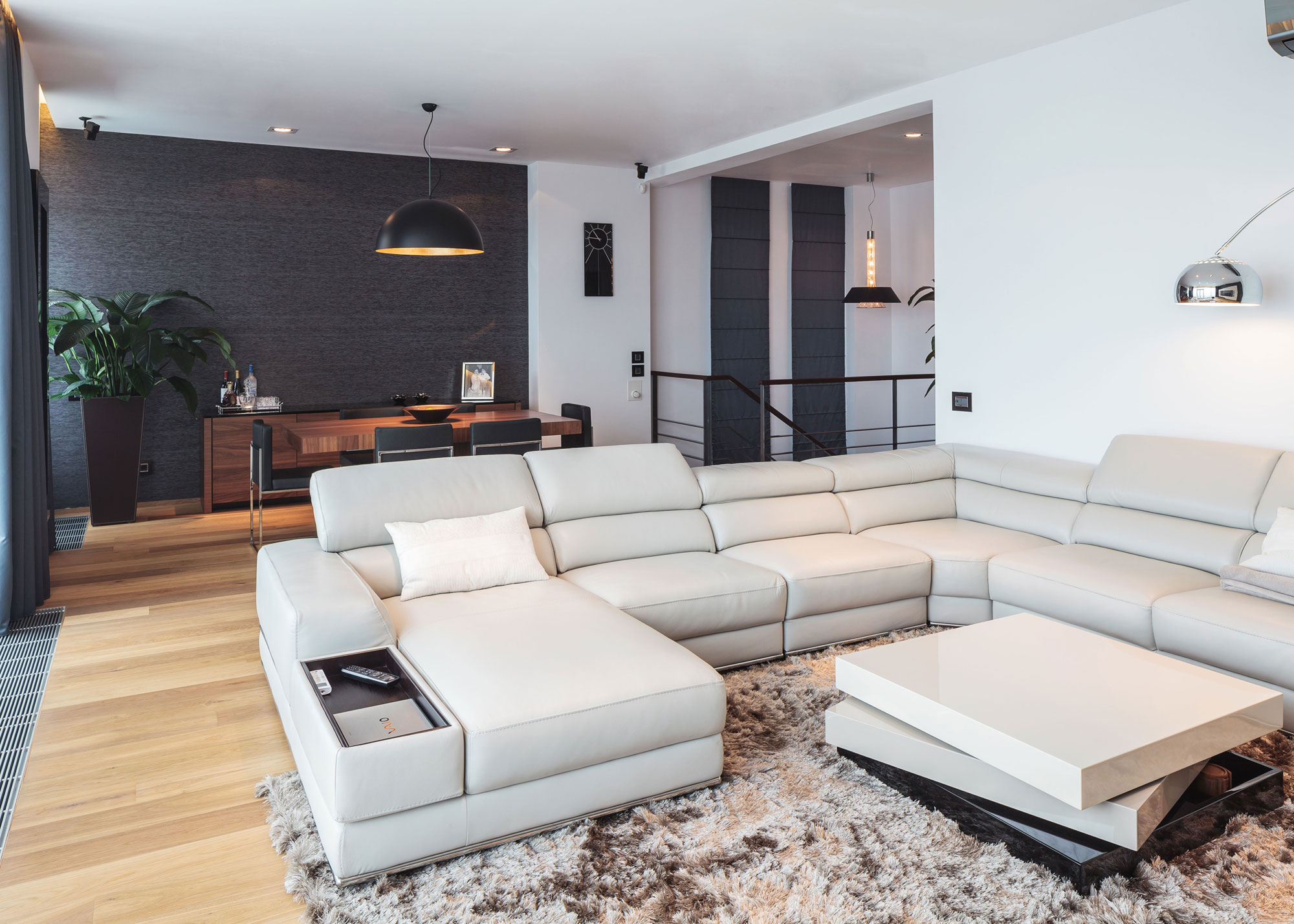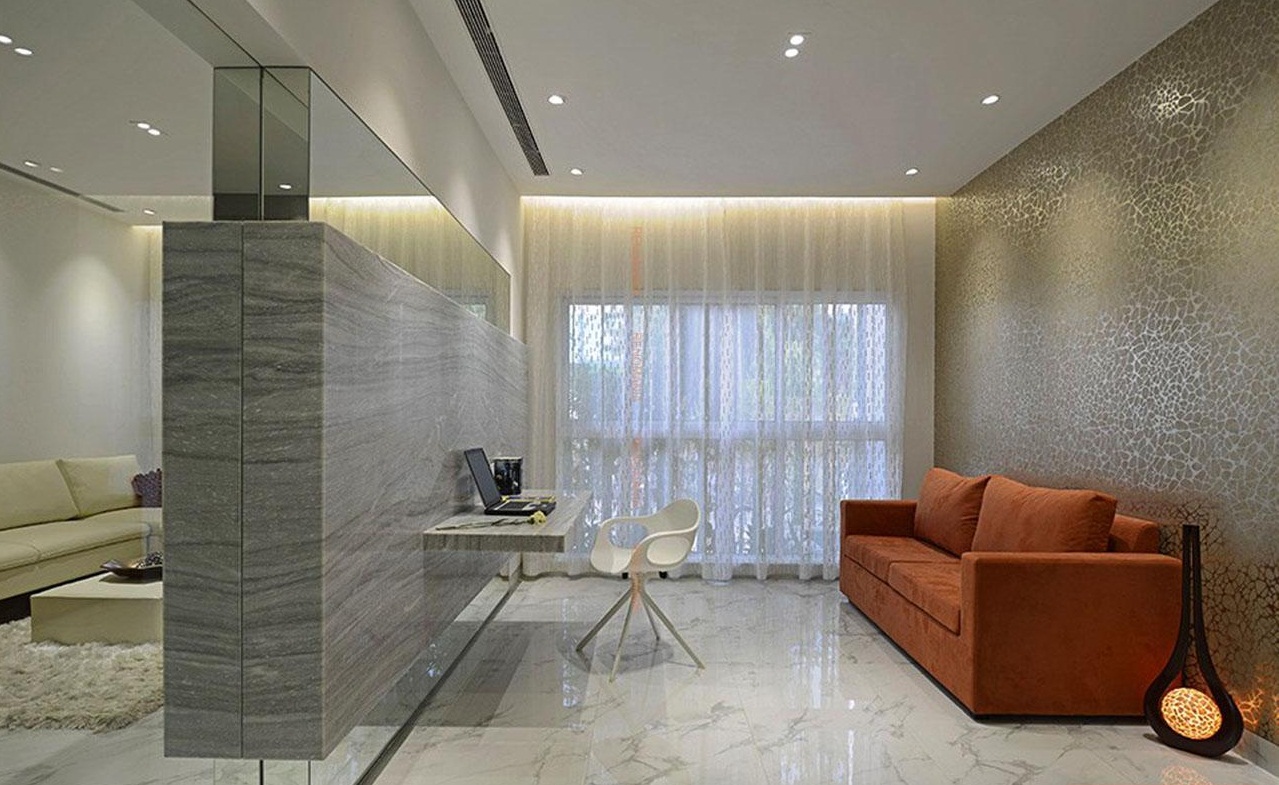 Des éléments mats sont également présents dans cet intérieur, mais ils ne sont pas aussi communs que brillants. L'intérieur doit contenir de nombreuses surfaces plates qui constituent la surface totale. Mais les éléments texturés diluent l'intérieur moderne.