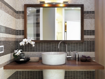 La salle de bain est une pièce d'expérimentation et d'idées créatives. Un miroir est nécessaire non seulement à des fins pratiques, mais convient également comme objet de décoration intérieure. Les carreaux de miroir ou les grandes surfaces pourront mettre en valeur le style moderne.