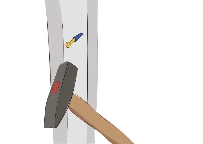 - enfoncer les goujons dans les trous avec un marteau. La vis est vissée avec un tournevis.Les antennes en plastique ne le laisseront pas quitter le trou;