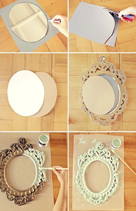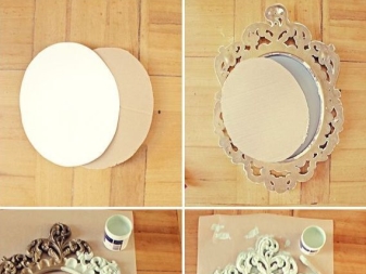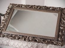 Les grands cadres massifs, éventuellement sculptés ou modelés, conviennent mieux pour décorer un grand miroir. En ce qui concerne le cadre d'un plateau de table ou d'un miroir à main, il est préférable qu'il soit décoratif, élégant. Peut-être sera-t-il incrusté de pierres scintillantes ou d'un motif sur de la pâte polymère, des coquillages ou des boutons. Il est possible de décorer un miroir rond de petite taille à l'aide d'une serviette ajourée pour un gâteau.