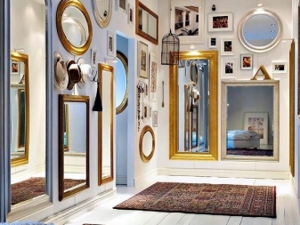 La forme du cadre doit être en harmonie avec le décor de la pièce dans son ensemble. Par exemple, dans une pièce conçue dans le style d'un classique, un miroir avec des moulures en moulure aura fière allure. Les tendances modernes en matière de conception des salles viendront compléter le cadre d’une forme géométrique avec des images. Pour élargir l'espace est idéal pour prendre quelques miroirs dans des cadres étroits.