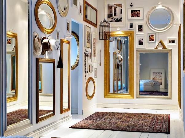 Plusieurs règles doivent être respectées lors de la décoration d'un intérieur avec des miroirs. Seuls les miroirs de la forme correcte doivent être placés dans le cadre.: rond, ovale ou carré.