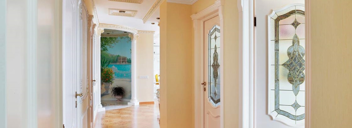 Une grande variété de verres teintés, opaques et transparents, utilisant la technologie de ponçage, décorés avec une gravure au diamant et des compositions de vitraux, font que ce type de portes intérieures est très populaire.