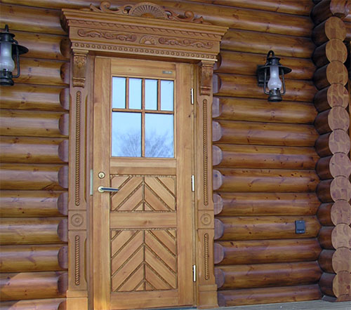 Il est nécessaire de choisir les portes d’entrée ou entre les pièces en tenant compte de l’intérieur général du logement qui s’harmonise harmonieusement avec l’échelle de couleur et le style d’enregistrement. Pour les maisons de campagne sont bien adaptés conceptions massives de bois, décorées avec des sculptures. Si le logement est construit à partir de matériaux naturels, les portes d'entrée doivent correspondre à son sujet. Les modèles recouverts de vernis sont magnifiques, ils soulignent complètement la beauté naturelle de l'arbre.