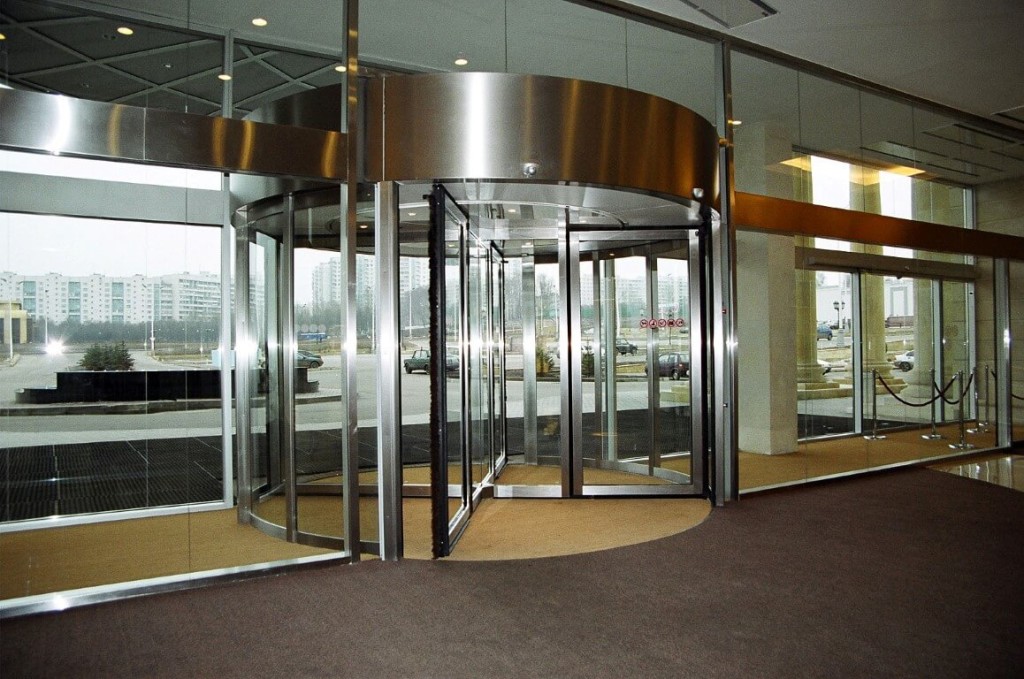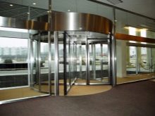 - Carrousel. La porte du type tournant est une feuille ronde à plusieurs rabats. Pour aller à l'intérieur, ils doivent pivoter autour de l'axe central. Vous pouvez rencontrer de telles constructions à l’entrée des centres commerciaux,mais là ils sont mis en mouvement automatiquement.