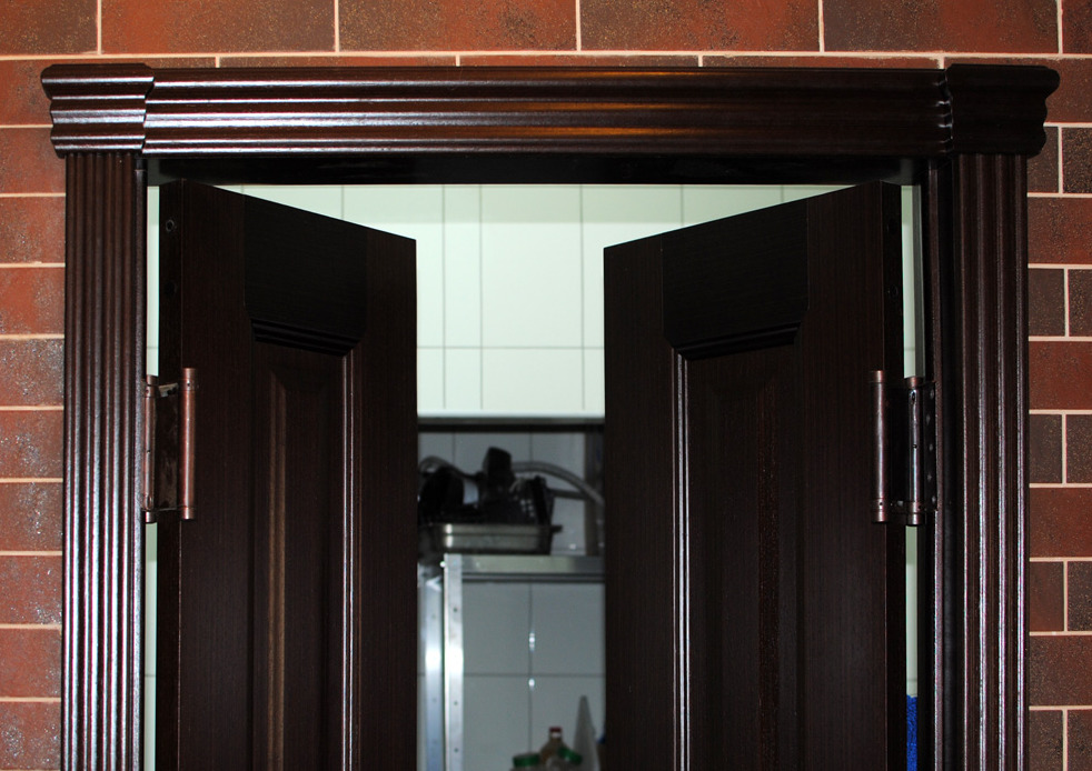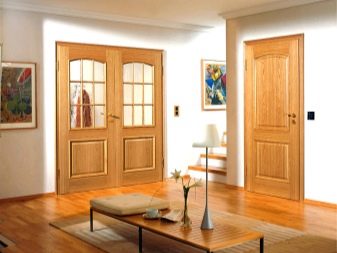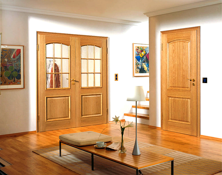 - Bois. Les portes en bois sont principalement installées à l'intérieur de la maison, car elles sont sensibles à l'humidité et perdent leurs qualités décoratives. Extérieurement, ils peuvent avoir une structure à la fois lisse et encadrée.