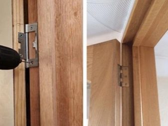Les charnières vissées ressemblent en grande partie à la mortaise, mais la fixation est réalisée à l'aide de fixations auto-taraudeuses, qui sont fixées au cadre du produit. Il existe plusieurs types de tels mécanismes. Les plus simples sont amovibles et le retrait de la porte s’effectue selon l’algorithme décrit précédemment.