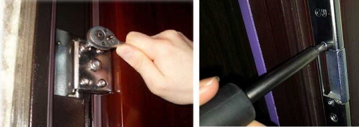 - La première étape consiste à accéder à la boucle elle-même. Cela ne peut être fait qu'à partir du bout du vantail de la porte. Par conséquent, il est nécessaire de l’ouvrir à un certain angle pour pouvoir travailler confortablement.