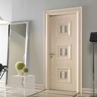- Par performance - sourd, vitré. Le prix du sourd dépasse le vitrage. Elles conviennent à une installation dans les chambres à coucher, les chambres d'enfants, les salles de bain, etc. Les portes avec inserts en verre s'intègrent parfaitement à l'intérieur des cuisines, des salons et des bureaux.
