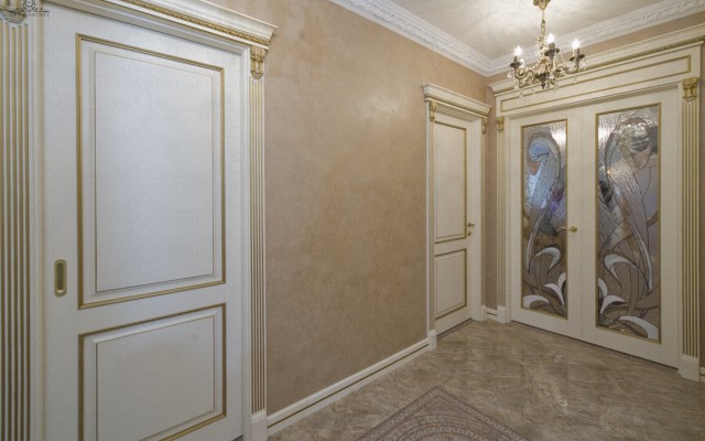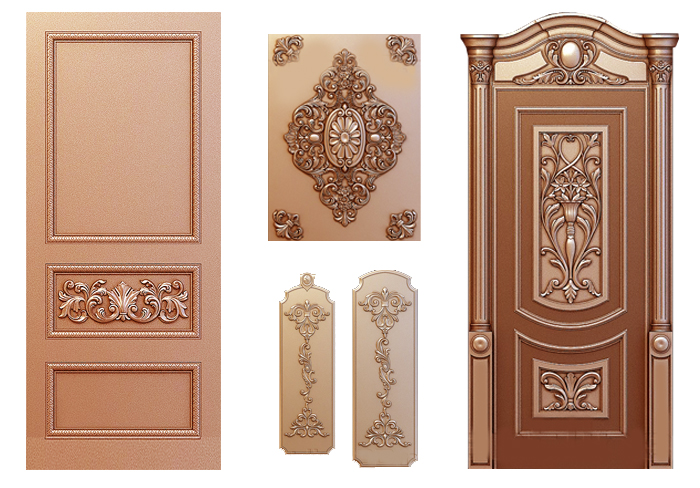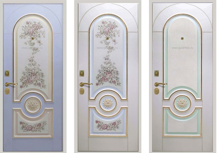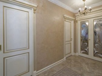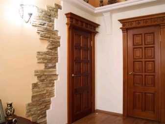 Certains styles se caractérisent par des superpositions combinées aux concepts de direction. Le loft a des conceptions intrinsèques avec des imitations délibérément grossières de planches empilées, tandis que les doublures baroques ne peuvent être imaginées sans stylos sculptés et ornés. Le minimalisme préfère les panneaux monolithiques sans manifestations de relief significatives. La haute technologie semble plus pertinente avec les revêtements en plastique mat pour portes.