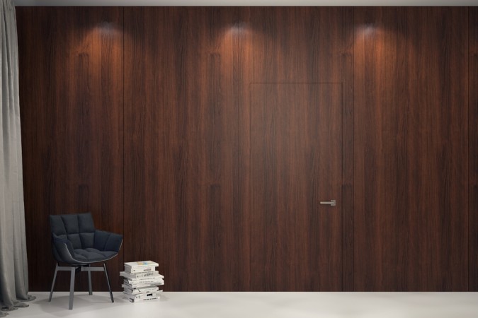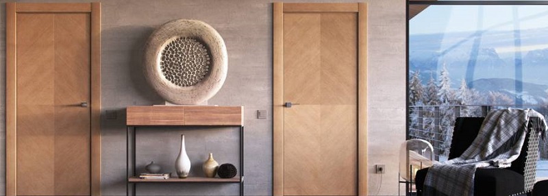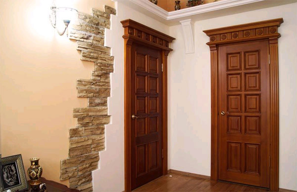 Pour les appartements et les pièces avec une faible humidité, un revêtement de placage approprié. Ils sont assez durables, si pas en contact avec de l'eau.Dans les maisons privées, où le microclimat est plus humide à certaines saisons, de tels panneaux ne doivent pas être installés à la porte.