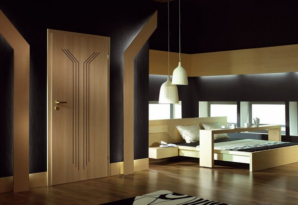 - Pour la chambre des superpositions moins massives sont utilisées.Ils peuvent être une combinaison de matériaux, combiner le bois et le verre dépoli. Parfois, la porte est décorée avec un miroir. Dans la conception des panneaux en bois, on se concentre souvent sur la direction horizontale des fibres, qui est parfois associée à la verticale. Pour la chambre à coucher sont souvent choisis des couleurs claires dans la décoration de la porte.