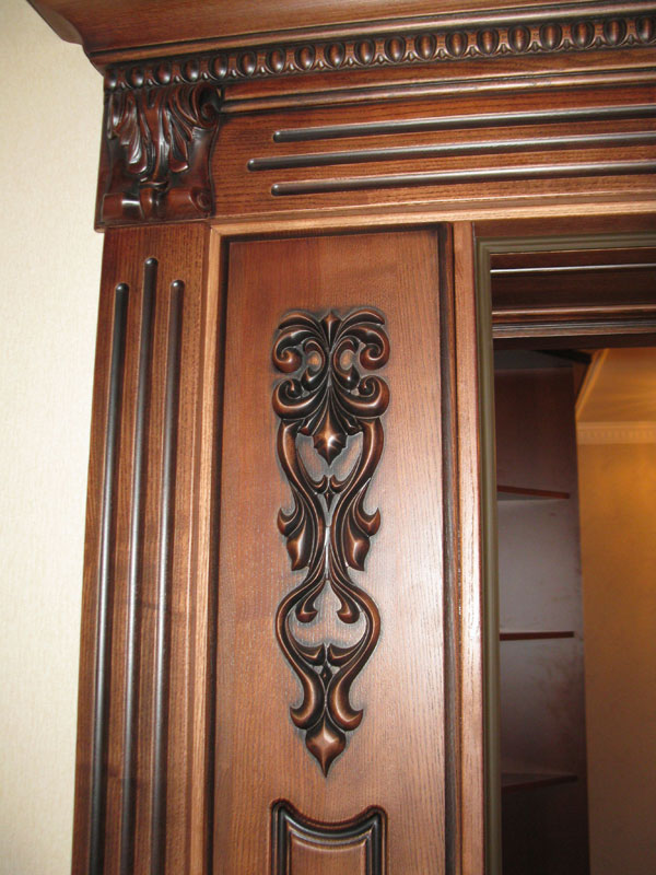 Le contreplaqué est un matériau très apprécié pour les garnitures de porte dans les appartements. À première vue, cela ressemble à un arbre. Le contreplaqué a une faible résistance à l'humidité, car il contient du placage et d'autres matériaux situés en couches. Lorsqu'elle est en contact avec de l'eau, la porte peut tout simplement commencer à se délaminer. Mais l’avantage incontestable du matériau est la possibilité de créer des produits sculptés de toute complexité en contreplaqué, qui décoreront l’intérieur de vos pièces.