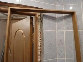 - Les doborys sont préparés de la manière ci-dessus, calés et plusieurs cales d'espacement sont ajoutées entre les dobors latéraux à l'endroit où les clous ont été cloués et du sol au dobor horizontal.Il est préférable de fixer les trous avec du ruban-cache d'un mur à l'autre à travers l'ouverture. Et de la même manière moussé.