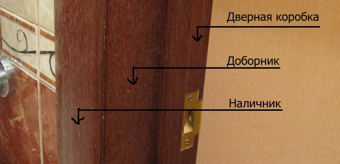 S'il n'y a pas de rainure, vous pouvez couper le panneau de la largeur de matériau sélectionnée correspondant à la largeur de l'ouverture recouverte. Assemblez le dob du dobor et insérez le montant de la porte à l’intérieur. Cela ne peut être fait que si la porte est mince ou si cela laisse suffisamment de distance pour monter la structure entière dans son ensemble et si le boîtier est suffisamment large pour couper le joint d'assemblage.