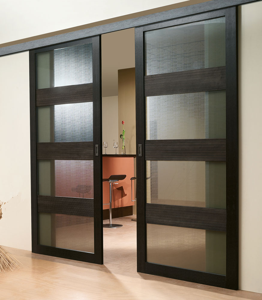 - Avec vitrage. Modèles avec un décor en forme de verre de taille, couleur et forme différentes, qui sont très populaires.