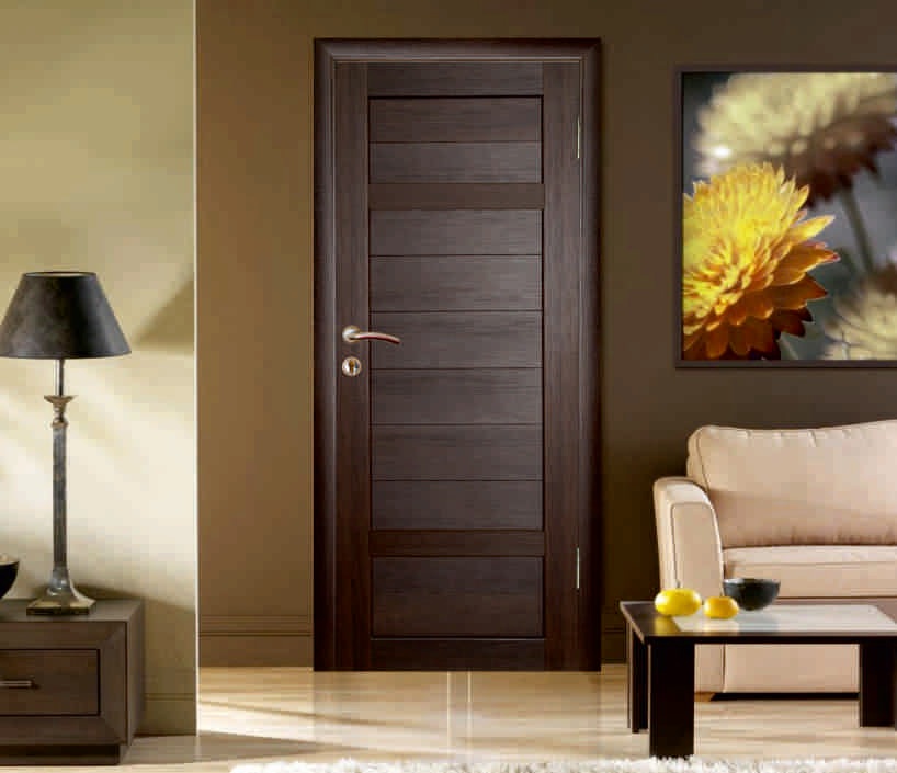 - Sol stratifié. Le matériau idéal pour créer une finition de porte robuste et durable.Un bon exemple en est les portes en wengé qui complètent harmonieusement presque tous les types d’intérieurs.