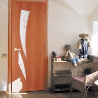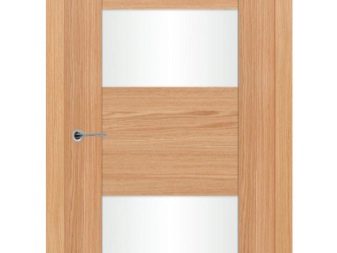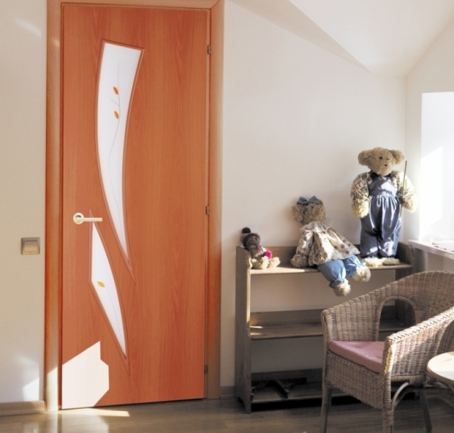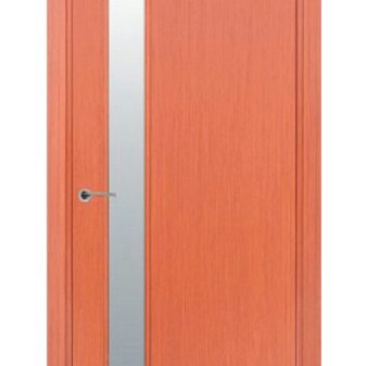 Le matériau principal dans la fabrication des portes est le placage naturel. Vernis, ça a l'air très intéressant. Ces produits sont disponibles dans différentes variations de couleurs: noyer, wengé, noyer teinté, cerisier. Le coût moyen est de 8200 roubles.