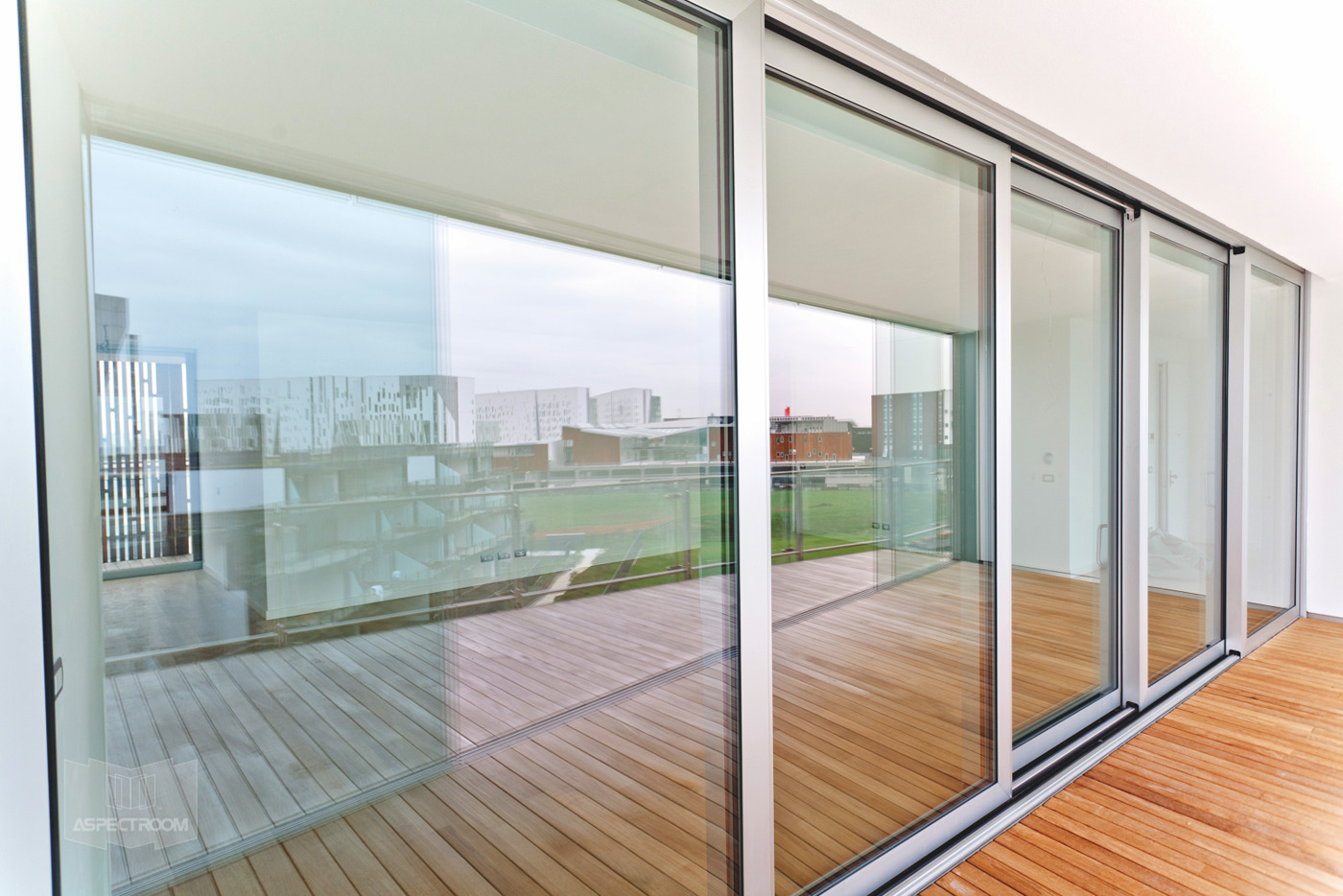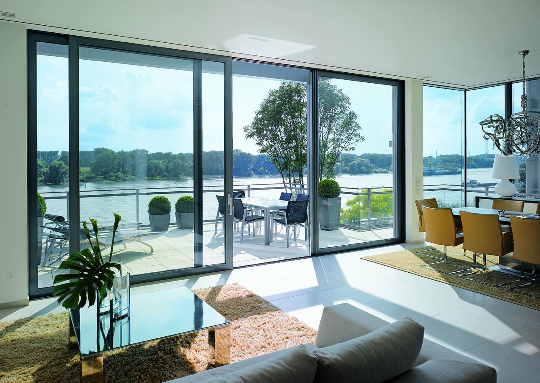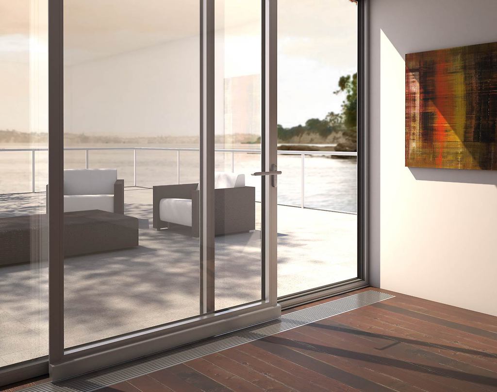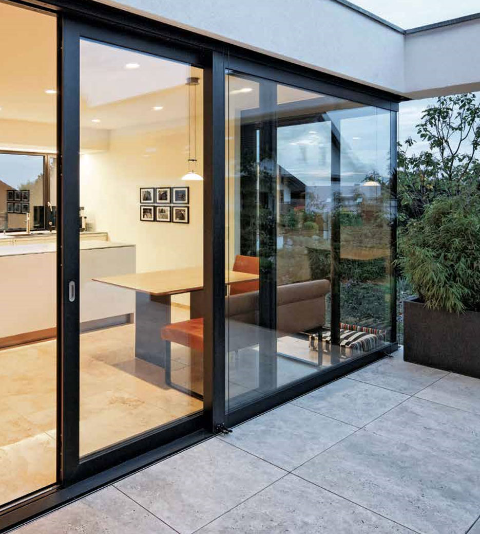 Vue d'ensemble des portes coulissantes en aluminium, voir ci-dessous.
