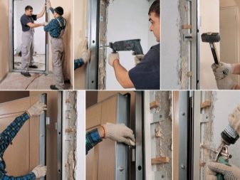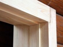 Les nouveaux produits avec une boîte doivent être légèrement plus petits que la taille de la porte elle-même. Cela est dû au fait que les lacunes technologiques sont prises en compte. La boîte doit être fixée aux boulons, qui sont pré-vissés dans un faux faisceau. Il est préférable d’assembler le cadre au sol et de fixer ses composants à un angle de 45 °.