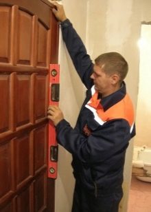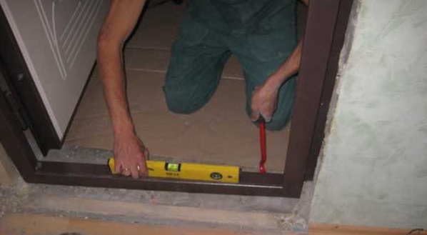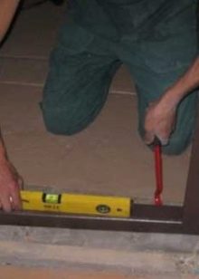 - Puis, à l'aide d'un niveau, vérifiez la position du seuil et du linteau supérieur, qui doivent être strictement horizontaux l'un par rapport à l'autre. Mais les rails latéraux devraient être dans une position verticale à angle droit.