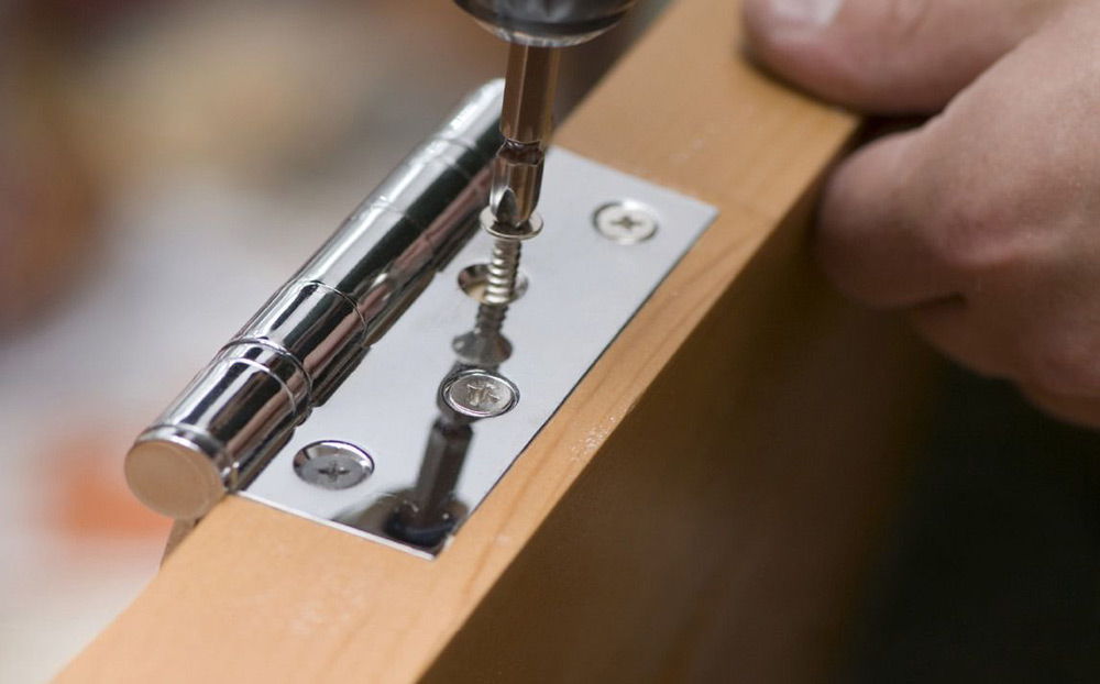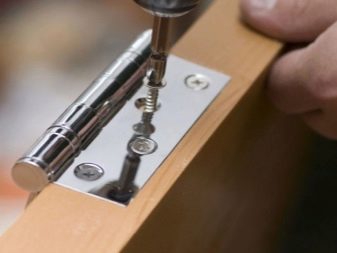 Ensuite, un tournevis sur les vis permet de fixer l’article. Une fois que la porte est placée dans une boîte et légèrement ouverte, un de ses auvents doit être étroitement inséré dans le fond de la boîte.Après avoir encerclé toutes les charnières, la toile est enlevée et la couche supérieure est enlevée avec un ciseau, après quoi les parties inférieures sont montées dans les rainures résultantes.