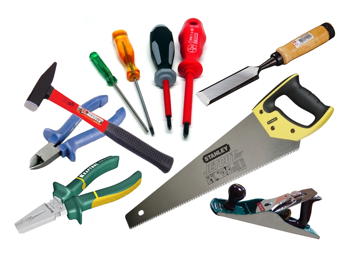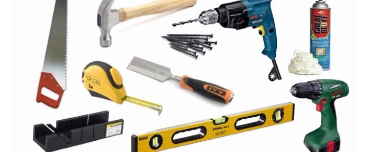 Avant de commencer à travailler, vous devez préparer certains outils: une scie, un marteau, une perceuse, un burin, une bande circulaire, une bande centimétrique, un niveau et des vis.
