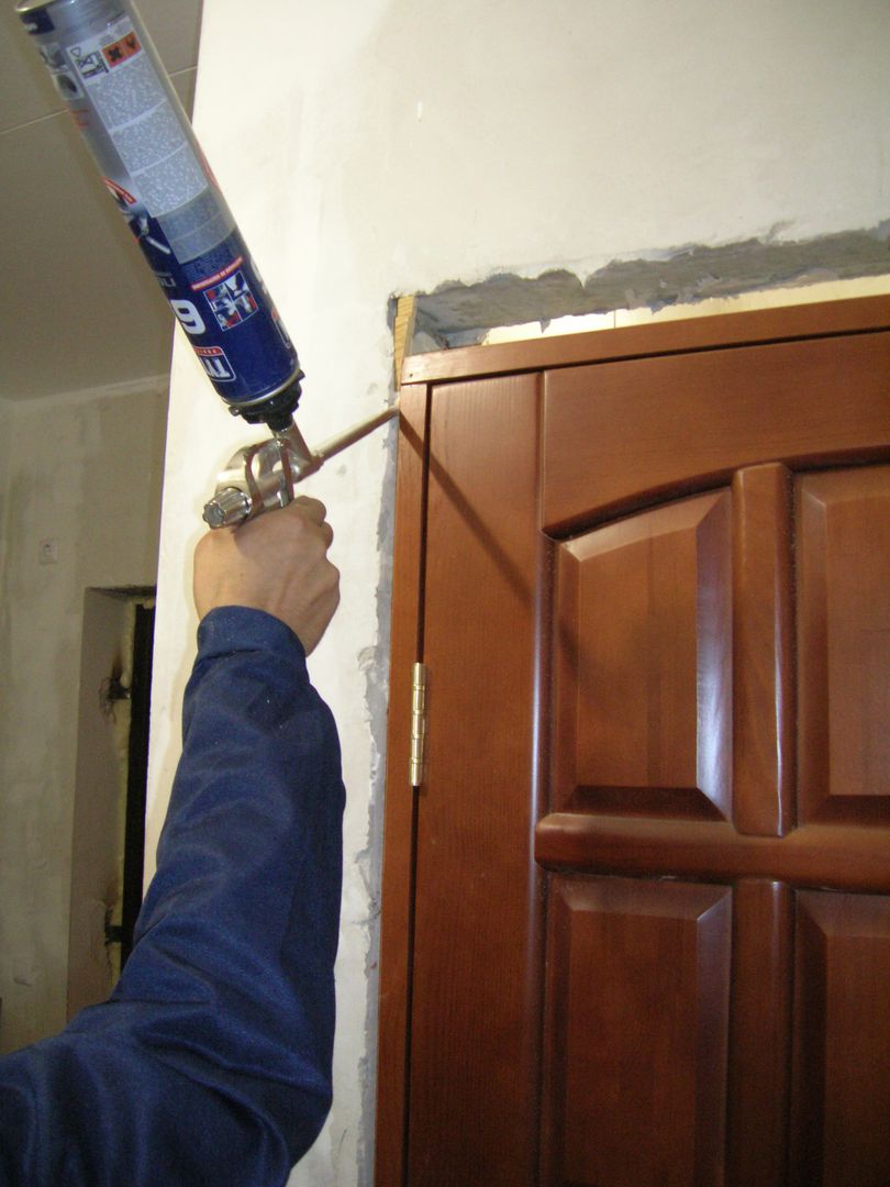 Une fois l'installation de la structure terminée, vous devez définir son niveau et la position. Mettre et réparer vous-même ne fonctionnera pas, vous devez donc demander de l'aide. Il est possible de combler les espaces vides entre la boîte et le mur uniquement après le montage des entretoises et des cales. L’essentiel dans ce domaine est de ne pas en faire trop avec de la mousse de montage, qui a tendance à gonfler au séchage.