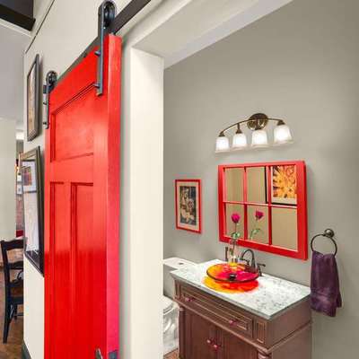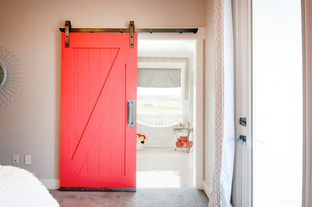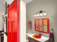 Les concepteurs ont également recours à un design créatif (par exemple, une peinture brillante du vantail de la porte). Cette palette de couleurs permettra de distinguer la porte du reste des éléments de décoration.