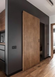 Les portes intérieures, principalement utilisées pour diviser l’espace en zones. Ils peuvent ne pas être aussi massifs que l'entrée. Les conceptions de porte en verre ou sous la forme d'un écran permettront de gagner de la place.Non exclu et l'installation de design d'intérieur de taille impressionnante, si la salle est également grande.