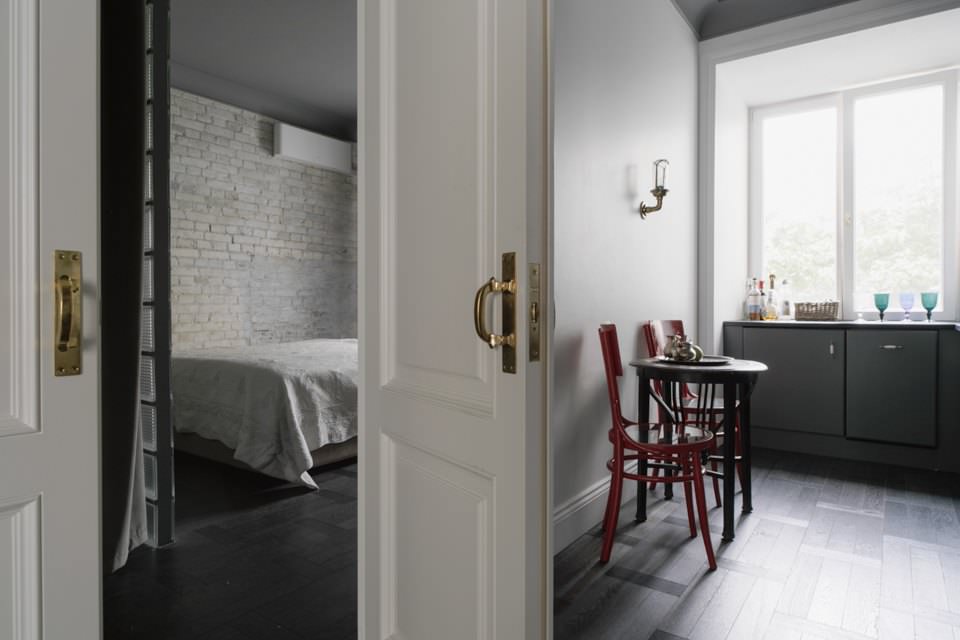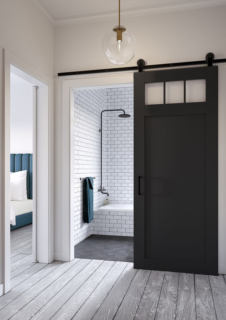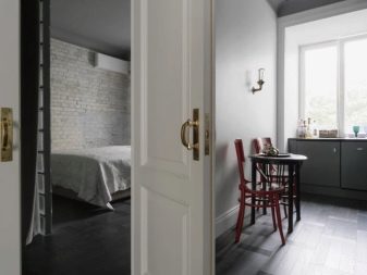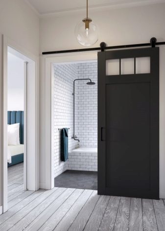 Pour les petites pièces, les portes blanches de style loft sont une bonne option. Les produits noirs conviennent mieux aux pièces de grande surface.