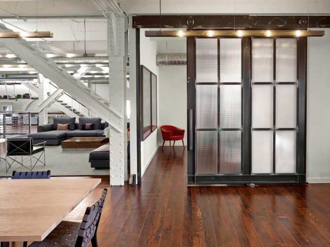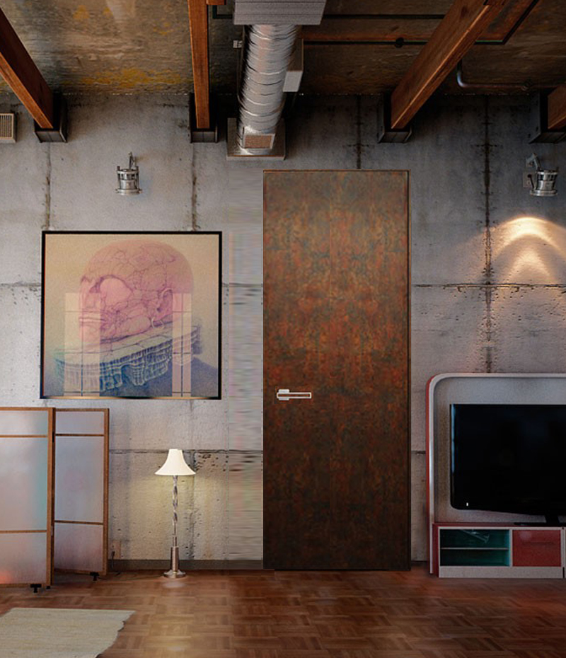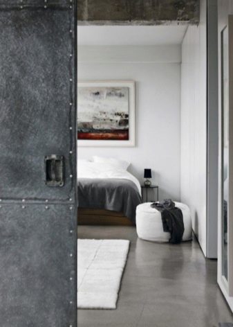 Le style industriel se caractérise par l'absence maximale de cloisons et de portes, mais dans un intérieur de locaux ne se font pas sans installation de portes.En design industriel, ils sont principalement installés dans la salle de bain, la chambre à coucher et à l’entrée du salon.